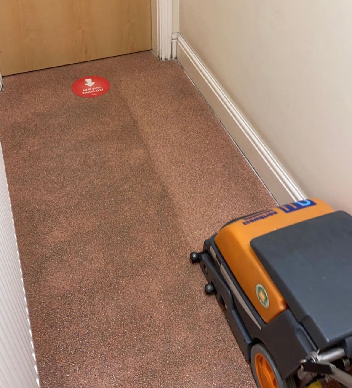 We can deep clean vinyl floors with our scrubber dryer machine. This helps break up the deeply-imbedded dirt that's been ground in over time, putting some colour back into it and giving it a fresh new look.